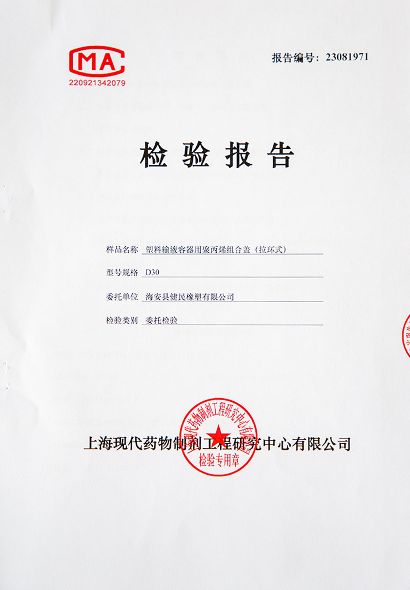 >> 塑料輸液容器用聚丙烯組合蓋 (拉環(huán)式)檢驗報告