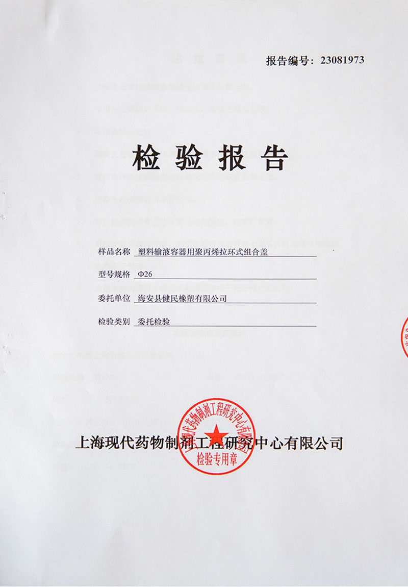 >> 塑料輸液究器用聚丙烯拉環(huán)式組合蓋檢驗報告