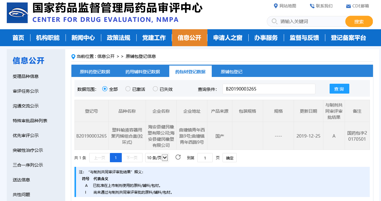 塑料輸液容器用聚丙烯組合蓋(拉環(huán)式) 信息公示